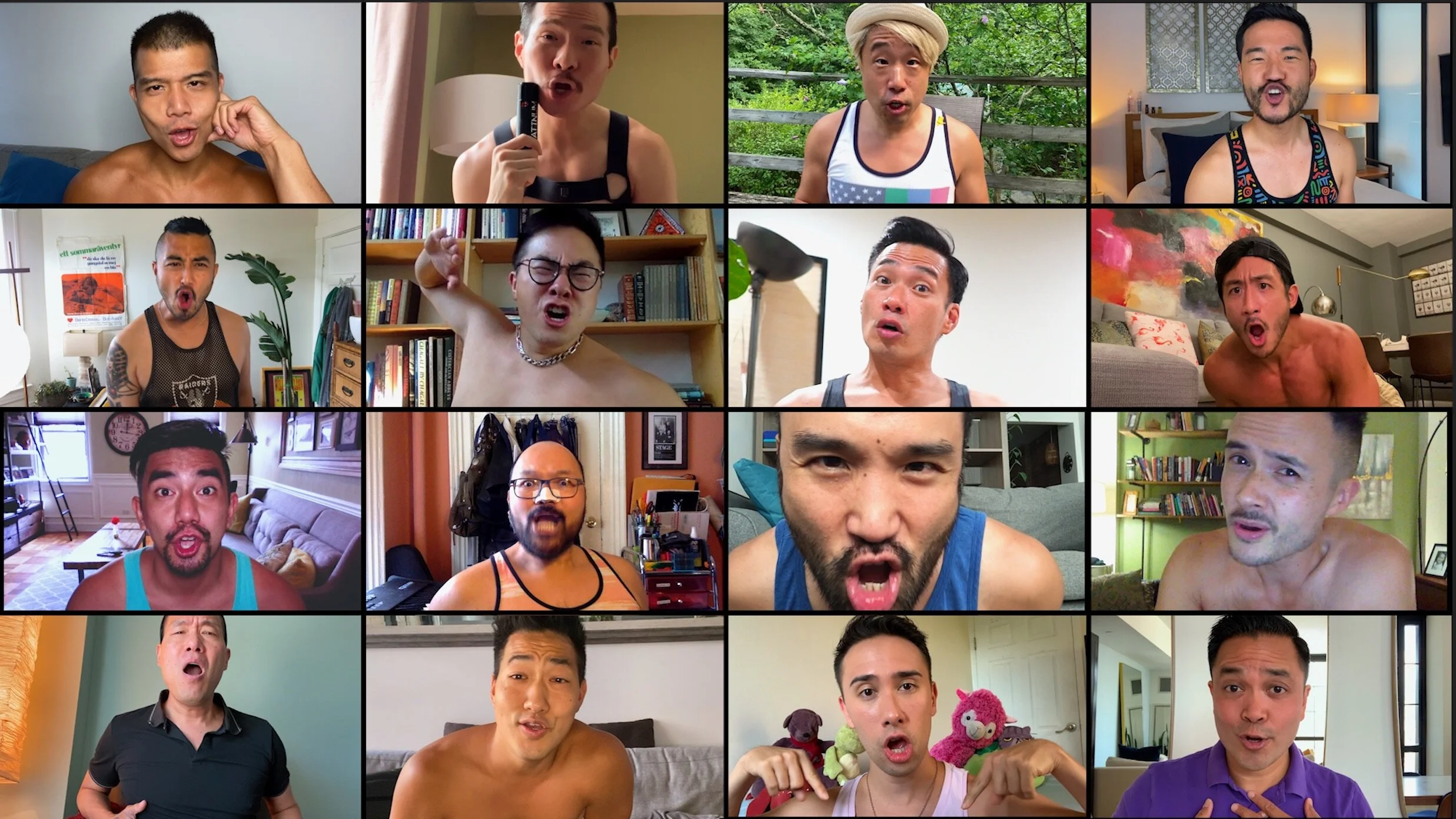 Special guests made delightfully irreverent appearances throughout the stream, including Saturday Night Live‘s Bowen Yang and a bevy of Asian Broadway performers – plus the man pursuing them all – in the socially distanced, cyber-dating romp “The Other Other Woman.” The video featured Aaron Albano, Mike Bulatao, Grant Chang, Marc delaCruz, Daniel K. Isaac, Kennedy Kanagawa, Darren Lee, Raymond J. Lee, Telly Leung, Jose Llana, Orville Mendoza, Jeffrey Omura, Matt Rogers, James Seol, Hansel Tan and Alex Wong.